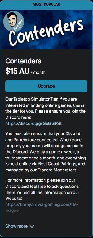 Patreon is the system we use to register payment. Once you have registered on Patreon, you will need to connect your account to your discord account using the same email address. This may take some time, but you will know once it is connected as your name will change colour in the discord.